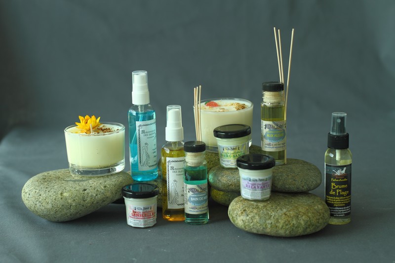 Huiles essentielles, gommages, bains effervescents, perles de bains, sels de bain.